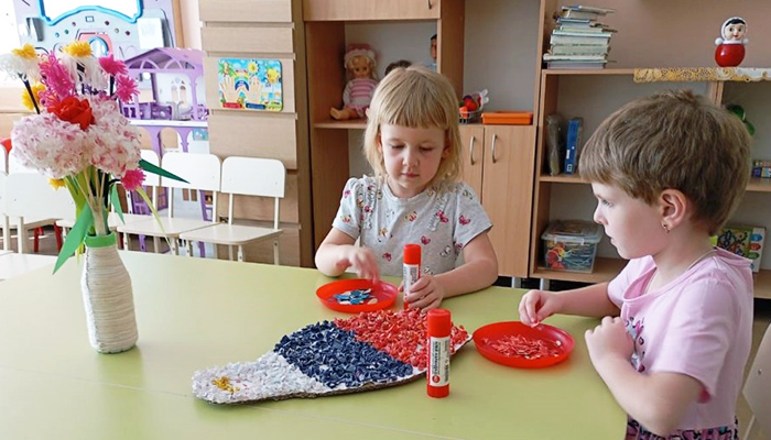 В ходе тематических бесед дети познакомились с историей флага, узнали о значении его цветов (белый — мир, синий — вера, красный — сила), приняли участие в играх и викторинах.