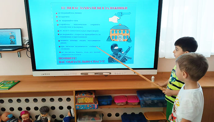 Воспитанники приняли участие в познавательной беседе «Мы за мир во всем мире», обсудили вопросы безопасности и как нужно себя вести в различных ситуациях. Познакомились с понятием терроризма на примере знакомых сказок и мультфильмов, учились разрешать проблемные ситуации, говорили о добре и зле, оформили тематические плакаты.