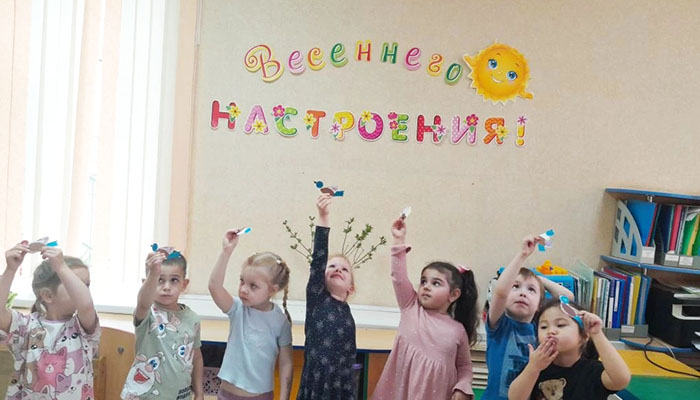 Вспомнили стихи и пословицы о весне, наблюдали за природой — отметили признаки весны. Вместе с педагогами украсили стены и окна декоративными элементами. Совместная творческая деятельность помогла создать радостную обстановку и хорошее настроение.